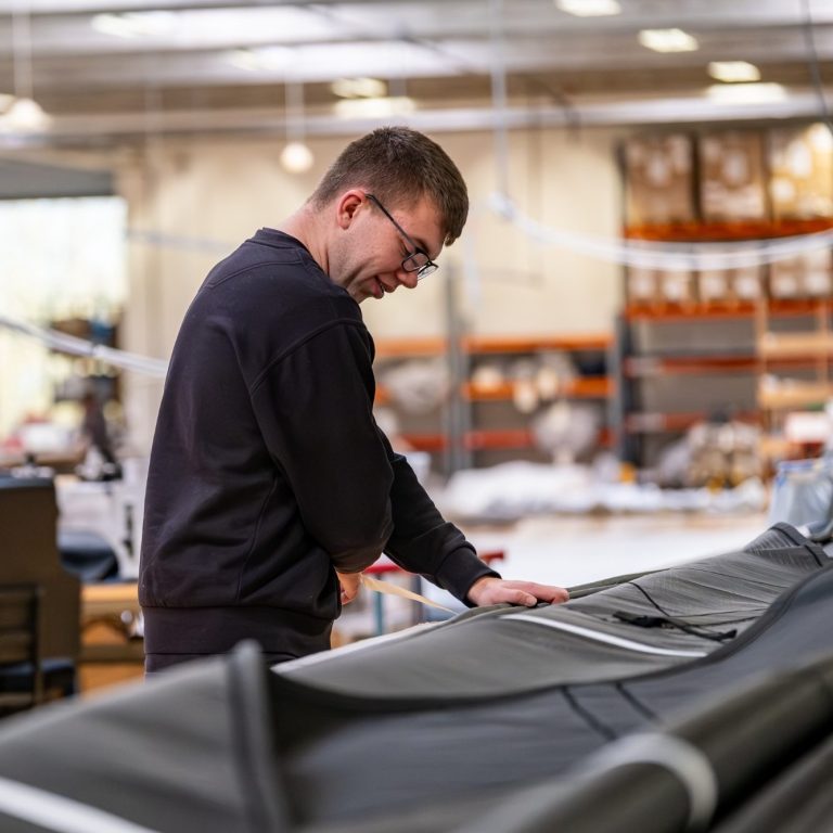 Pour conserver notre savoir-faire et répondre à tous les besoins, Jade Voile conçoit et fabrique également des voiles et des selleries sous la marque Jade Voile, 100 % fabriquées sur notre plancher, dans notre atelier situé à La Plaine-sur-Mer.
